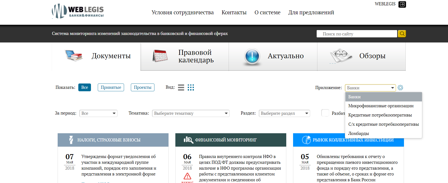 Пользователь может смотреть все документы - принятые документы и проекты актов, может отдельно изучать принятые, проекты - для этого он должен выбрать соответствующую опцию в левой части страницы: "Все", "Принятые", "Проекты".